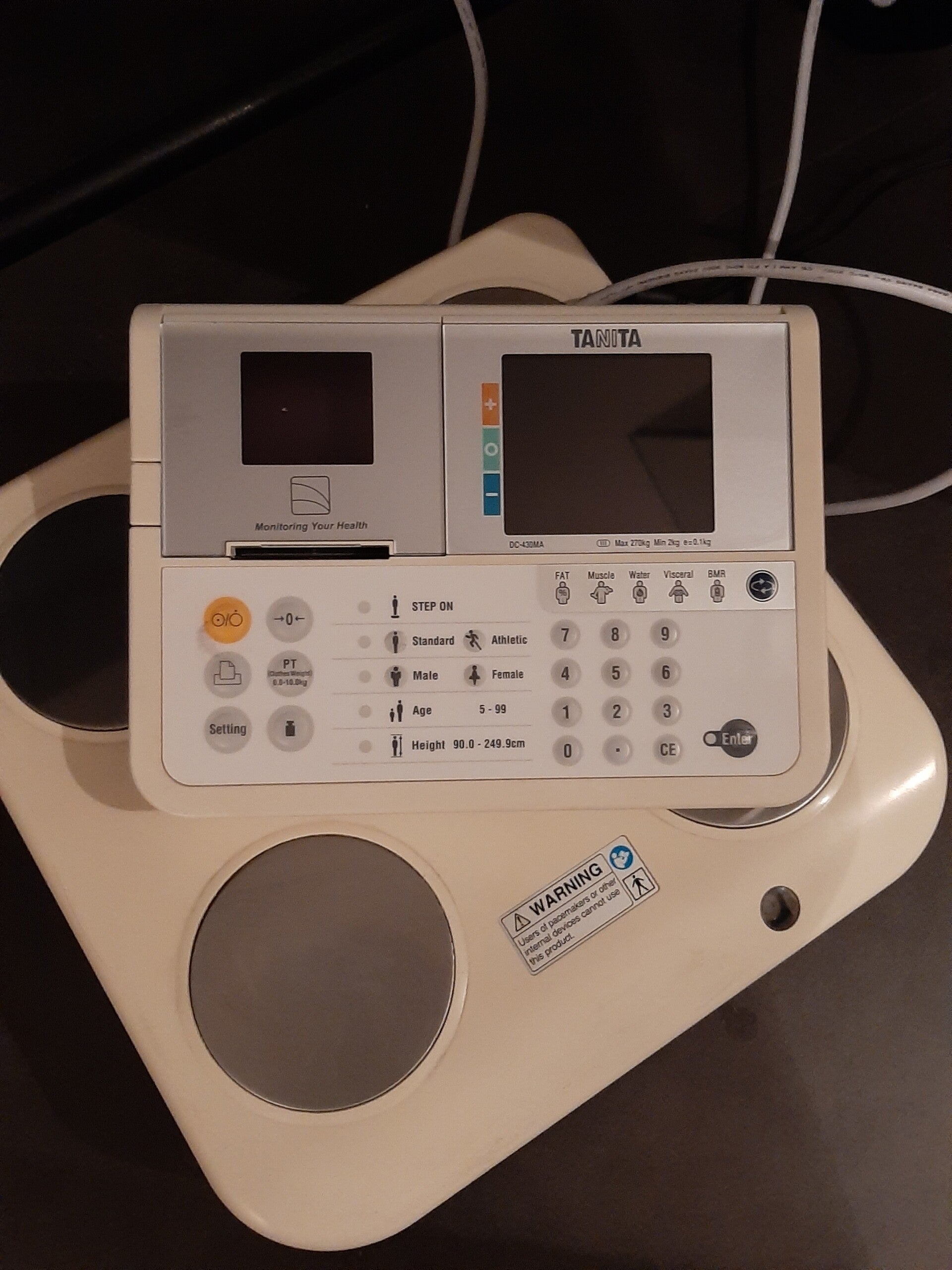 - meten van je lichaamssamenstelling: vetmassa, spiermassa, vochtmassa, buikvet